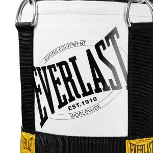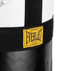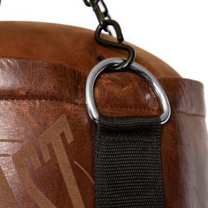 A classic look with modern appeal and technology. the Everlast 1910 Vintage Leather Heavy Bag is lets people know your serious about your boxing. Strategically placed Strap Balancing System with premium durable chain system keeps bag in the ideal vertical position. bringing the bag back to center with unmatched speed a precision after every strike. Top mounted metal d-rings allow for easy. balanced and secure installation. Bottom mounted d-ring allows for additional security by attaching to floor or your Everlast Training Bag Anchor. A modern take on a classic line. the Everlast 1910 Vintage Leather Heavy Bag is a must have for any fight connoisseur.