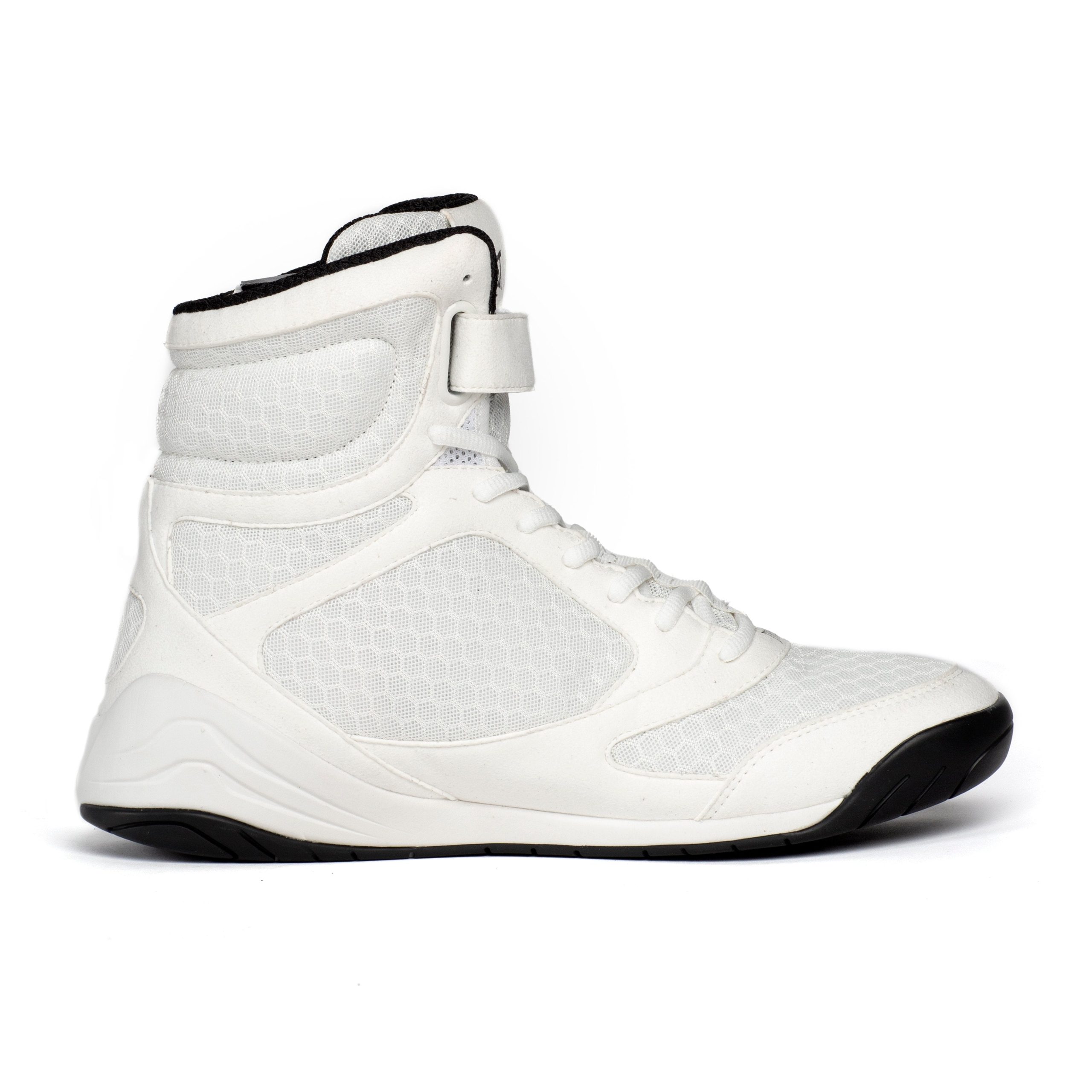 A lightweight high-top boxing shoe. re-engineered with the understanding that footwork is everything. Constructed with the perfect formula for speed. comfort. and durability without compromising traction and performance. The versatile hybrid design allows athletes to seamlessly transition from gym to canvas for optimal training and competitive performance. The high-top design and additional ankle strap enhance support during punching. movement. and sudden change of direction.