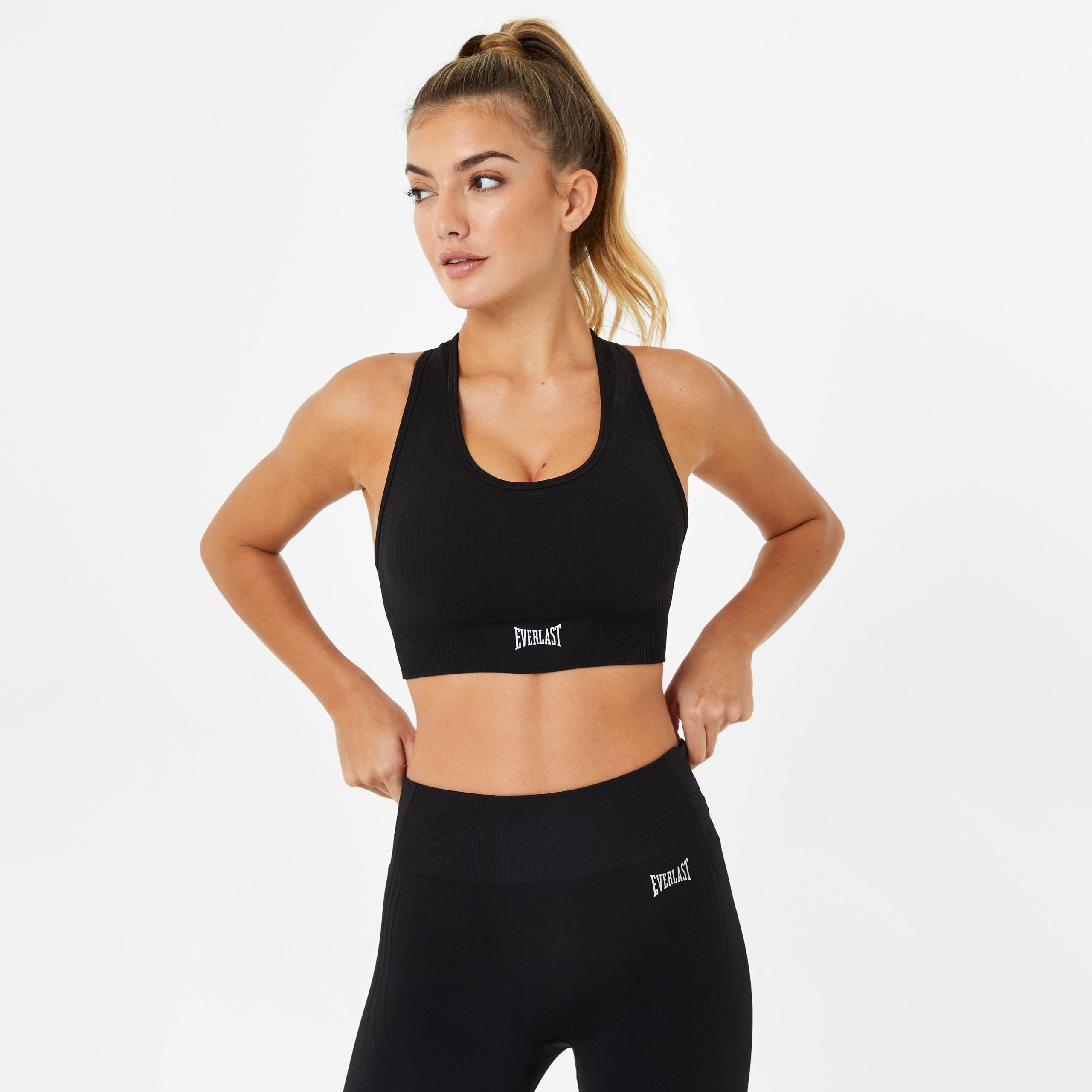Level up your training with this Everlast crop sports bra. Designed to bring your best active session forward in our seamless style. creating that flawless finish. Crafted with scoop neck and classic racer back and designed with an Everdri technology. this is the ultimate exercise companion whatever your workout. You are guaranteed to feel confident and your best self from the flattering appearance.